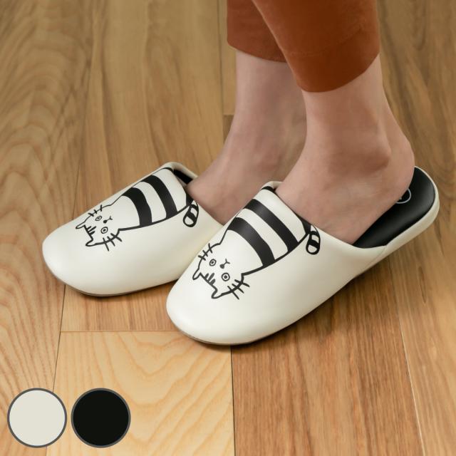 スリッパ ふきふきネコソフト Mサイズ ホワイト ( ルームシューズ ルームスリッパ トイレスリッパ 室内用 室内 レディース ビニール 拭ける 合皮 撥水 滑り止め 軽量 軽い 白 黒 ねこ 猫 ネコ ねこ柄 動物 アニマル かわいい )
