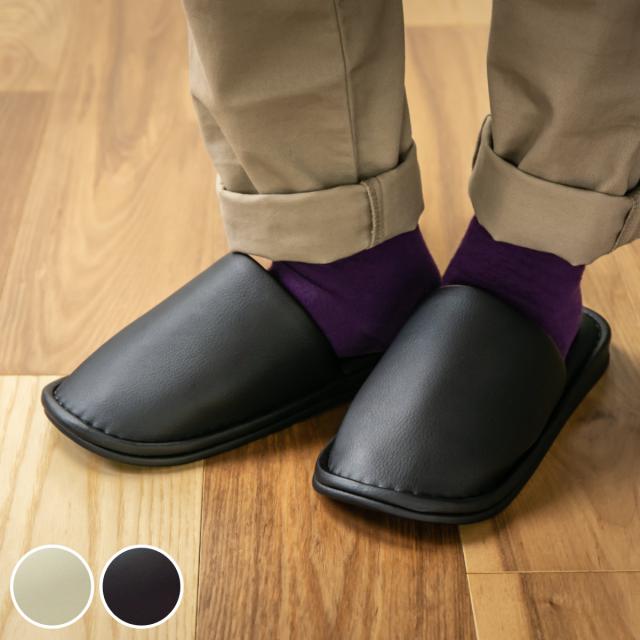 スリッパ マッドビニールレザー Lサイズ ( ルームシューズ ルームスリッパ 室内用 メンズ ビニール 拭ける 合皮 フェイクレザー 25 26 27 シンプル ナチュラル モダン ブラック ベージュ )
