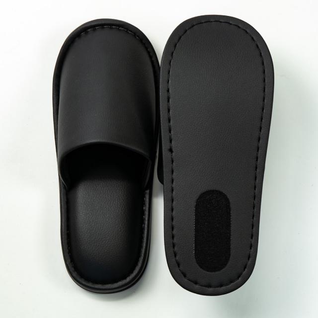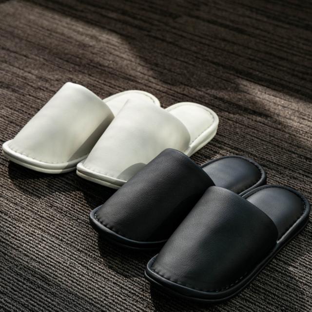 つや消しタイプのマットなビニールレザーを使用したスリッパです。ラムスキン風のなめらかな質感は高級感のある雰囲気にしてくれます。ご自宅用としてはもちろん、来客用として用意しておけば、いつお客様が来ても安心です。サロンや病院、公共施設のスリッパとしてもおすすめです。