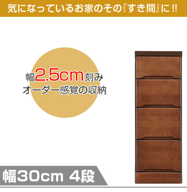 スリムチェスト 4段 すき間収納 引き出し 木製 幅30cm ( タンス チェスト ランドリーチェスト 整理タンス 完成品 収納 隙間 すきま 整理 衣類収納 チェストタンス 完成品)