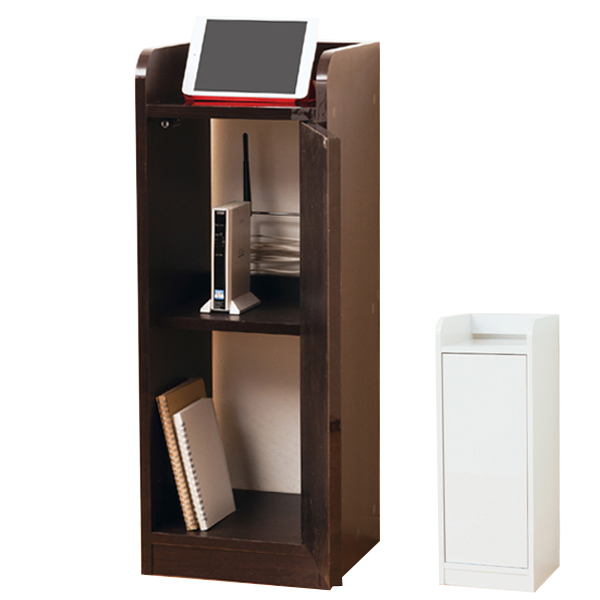 《棚 キャビネット 扉収納 スリムタイプ ラック 家具WiFiラック ルーター収納 キッチン リビング スマホ 充電 ブラウン ホワイト 白色 茶色 シンプル オシャレ おしゃれ 新生活 引越し 引越 一人暮らし 可動棚 30センチ 30cm》