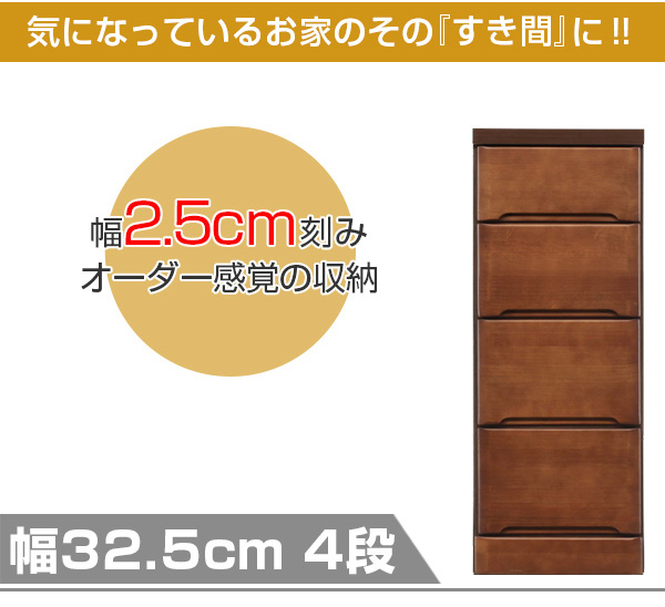 スリムチェスト 4段 すき間収納 引き出し 木製 幅32.5cm ( タンス チェスト ランドリーチェスト 整理タンス 完成品 収納 隙間 すきま 整理 衣類収納 チェストタンス 完成品)