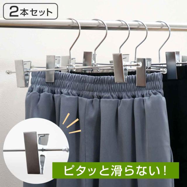 スカートやボトムスなどをしっかり掛けることができる、スカートハンガー2本セットです。