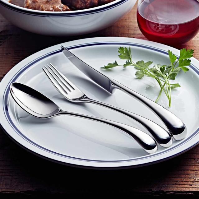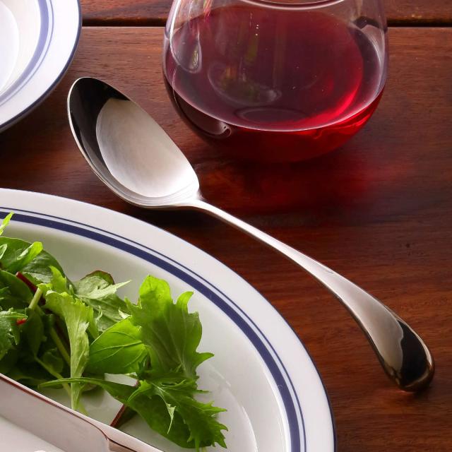 手に馴染みやすく重量感のあるスプーンです。デザート以外にもライス、スープなどにもお使いいただけます。艶やかで上質なカトラリーは、おもてなしシーンや大切な方への贈り物にぴったりです。
