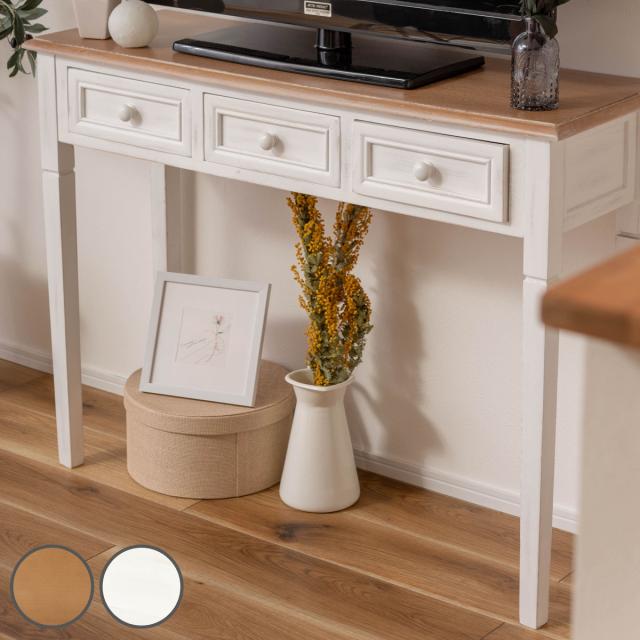 コンソールデスク 幅100cm 天然木 アンティーク調 ( コンソール テーブル スリム ディスプレイ 飾り棚 棚 作業台メイク台 引き出し 収納 玄関 リビング ヴィンテージ調 ナチュラル カントリー調 木製 )