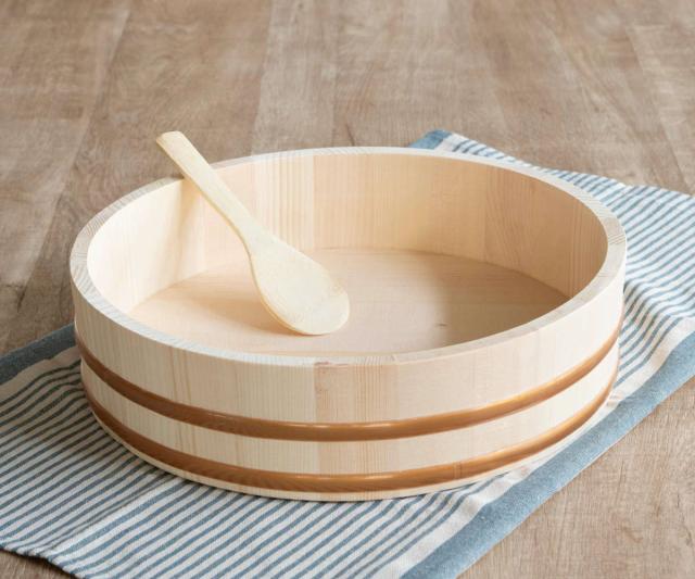 余分な水分を吸い取ってくれる、約7合用の天然木製の寿司桶