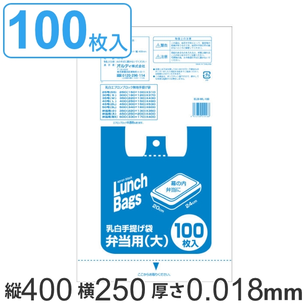 レジ袋 40x25cm マチ20cm 厚さ0.018mm 50号 お弁当用 大 ( 100枚入り 乳白色 エプロンブロック 白 ごみ袋 ポリ袋 マチ付 取っ手付 カサカサ キッチン リビング 100枚 中身が見えない スーパーの袋 )