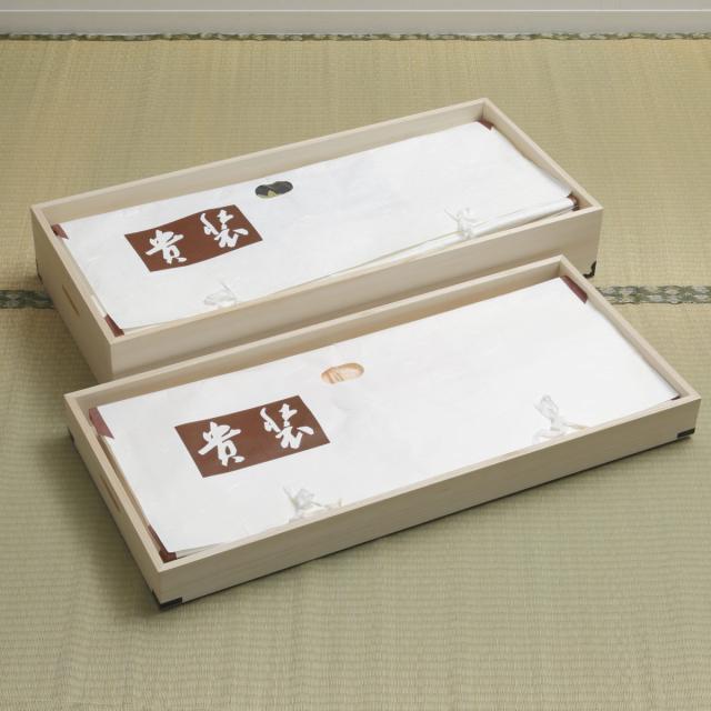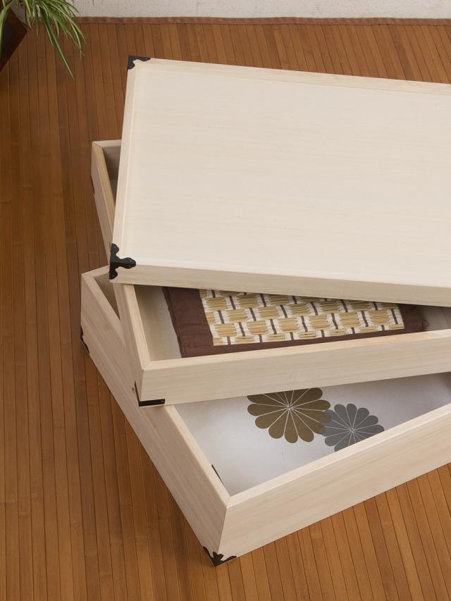 たとう紙に入ったままの着物を収納できるサイズ設計です。着物以外にも、大切な衣類の保管に最適です。