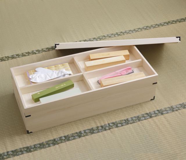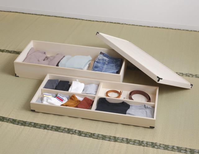 タンスの上や押入れの中など、和室にも洋室にもしっかり調和するシンプルなデザインです。