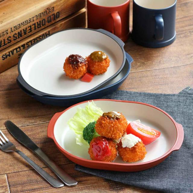 おかずと、ちょっとした付け合せやサンドイッチ、パスタなどのメイン料理、サラダや副菜にと、毎日の食卓に活用できるサイズのプレートです。ココット皿や豆皿を置いて小さめのワンプレートにも使えます。