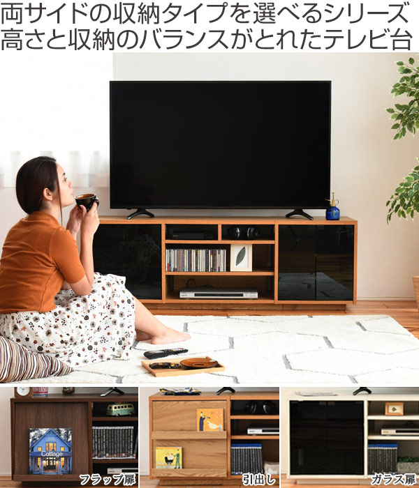 左右の収納をデザインや用途によって選べるハイタイプテレビ台