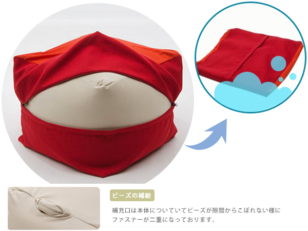 国産の極小ビーズをたっぷり使用し、どんな体勢でもフィットする座り心地にこだわったビーズクッションです。好きな場所に持ち運んでお昼寝や読書を快適に楽しめます。