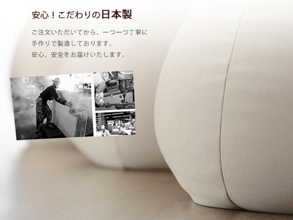 国内のソファメーカーが自社工場で生産している安心の日本製です。熟練した職人たちがひとつひとつ丁寧に作り上げています。