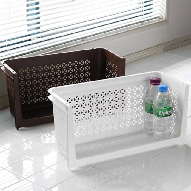 積み重ねると省スペースに収納ラックがつくれます。高さが低めの浅型タイプは飲み物や調味料、タオルなどの収納に便利な大きさです。キッチン、洗面所、玄関、子ども部屋などでデッドスペースになりがちな縦の空間を有効活用できます。