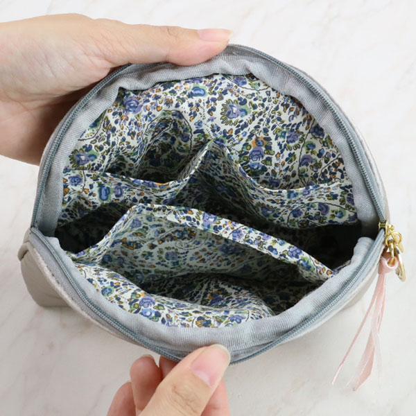 持ち歩きに便利なサイズ感のポーチなのでコスメポーチとしてはもちろん、サニタリーポーチやバッグ内の小物整理などにもお使いいただけます。