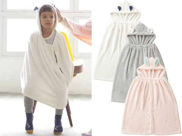 子どもと一緒にお風呂に入ると、お風呂上りはいつもドタバタ!体と髪の毛を拭いて着替えさせて、自分の事もしなきゃ...と大忙しですよね。そんな時にこのフード付きタオルは便利です!マイクロファイバー素材が水分を吸収するので、ざっと体と髪の毛を拭いて、かぶせるだけでOK!見た目の可愛さも手伝って、忙しい時間が楽しい時間に変わります。