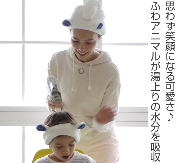思わず笑顔になる、ふわふわの吸水アニマルヘアターバン