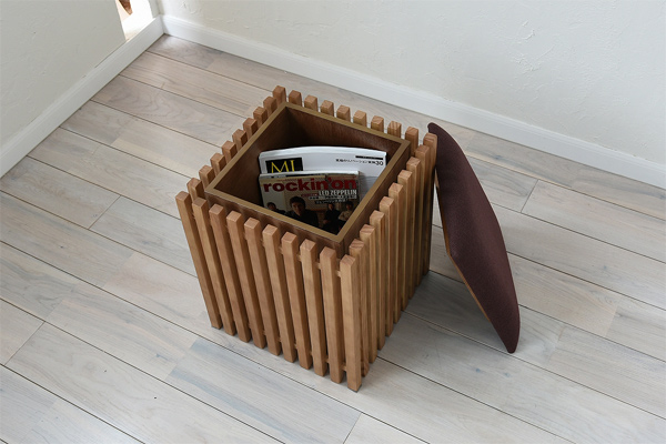 側面は全て格子になっているので、収納スツールという印象を感じさせない繊細な形に仕上がっています。