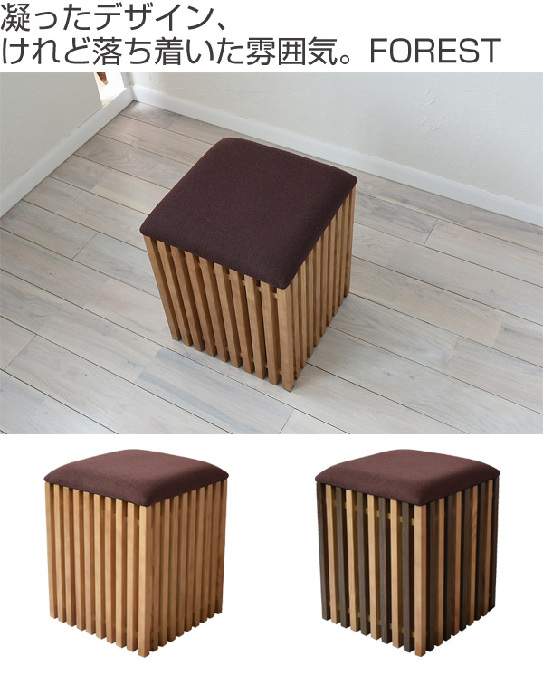 収納スツール 天然木 FOREST 座面高42cm ( 座椅子 ローチェア 収納付 木製 角材 ウッディー モダンデザイン )