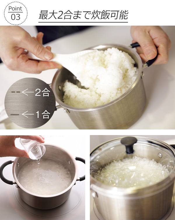 炊飯メモリ付きで、最大2合までご飯を炊くことができます。満水容量は1.4Lです。※食洗機は使用できません。