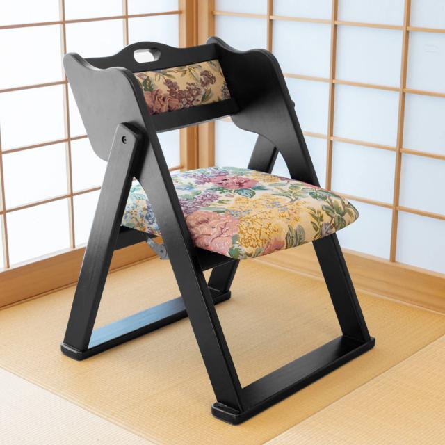 お座敷チェア 座面高36cm 座椅子 折りたたみ椅子 花柄 ( チェア いす 椅子 コンパクト 折りたたみチェア 仏事 法事 仏具 仏前 仏壇前 冠婚葬祭 黒 和室 お座敷 木製 )
