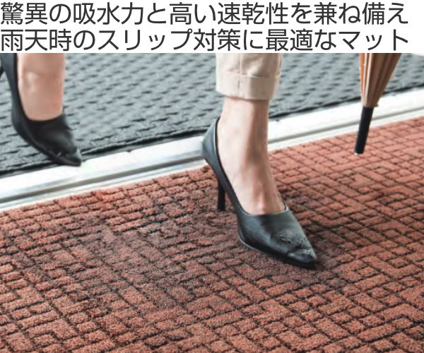 抜群の吸水・速乾性能で快適な足元環境を実現しました。商業施設やオフィスビルのエントランスなど、人の往来が多い施設にもおすすめです。