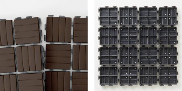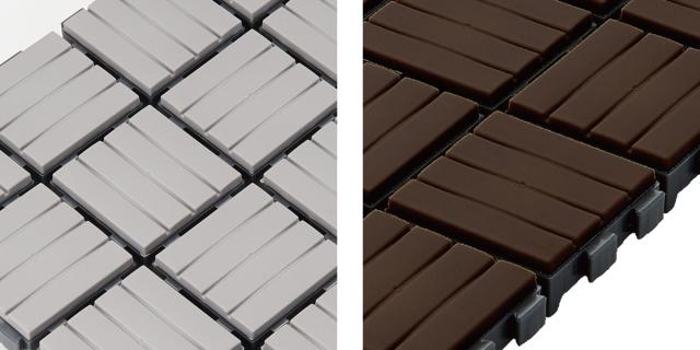 雨にさらされても腐食しにくいプラスチック素材なので、木製の床材のように傷まず、長くご使用いただけます。