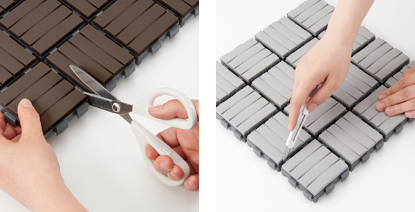 ジョイント部分は、タテ・ヨコ関係なく自由に取り外しが可能です。1枚あたり約470g と軽いので扱いやすく、女性でも簡単に作業ができます。