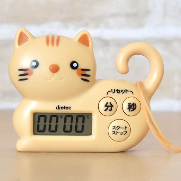 キッチンタイマー マグネット付き ねこタイマー ドリテック ( DRETEC デジタルタイマー クッキングタイマー デジタル式 タイマー ストップウォッチ カウントダウン カウントアップ 磁石 冷蔵庫 自立式 吊り下げ 猫 ねこ ネコ )