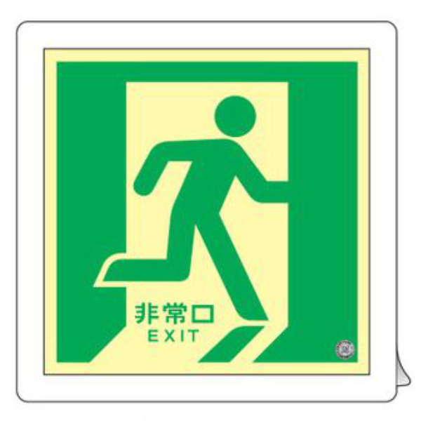 電気が消えたあと、夜間でも確実に誘導できる蓄光式標識