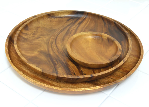 木のぬくもりと表情豊かな木目が美しいアカシアシリーズの丸型プレートです。