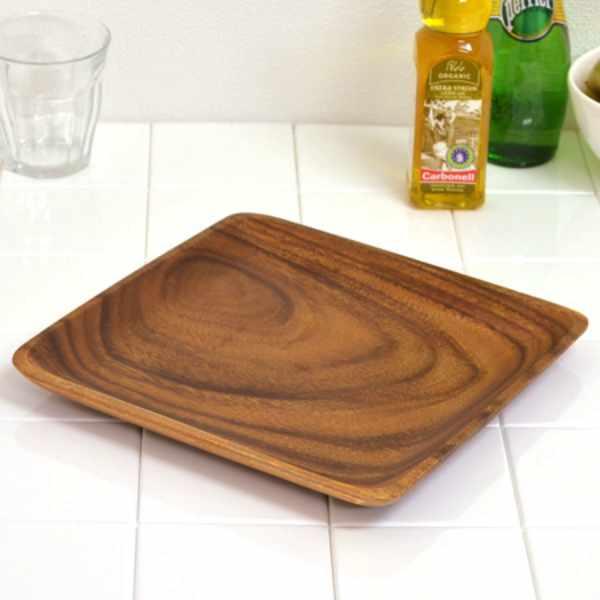 アカシア プレート 25cm 角皿 木製 ( 木製プレート お皿 皿 盛り皿 木製食器 角 スクエア メイン料理 大皿料理 キッチン用品 インテリア お盆 トレー 北欧風 おしゃれ )