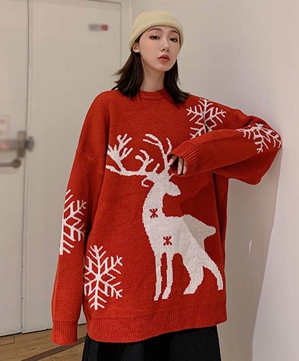 トナカイ柄 クルーネック 雪花柄 ニット セーター メンズ レディース メンズ クリスマス 男女兼用 レジャーセーター ペアルック カップル レッド ブラック 長袖 上品 秋冬 プレゼント 親友 おしゃれ 通勤 厚手 可愛い パーティー 20代 30代 S/M/L/XL/2XL ef178ze