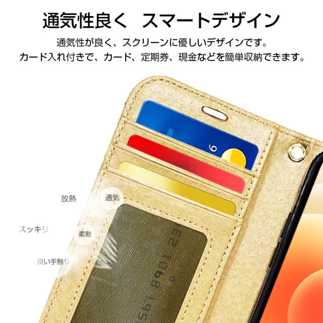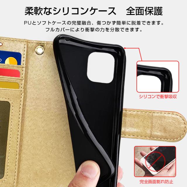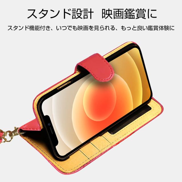 【スタンド機能&カード収納】横置きスタンド機能が付いて、ハンズフリーで、好きな角度に調節し、動画鑑賞や読書などを楽しめます。財布型ケースとして、内側には三つのカード入れとフリーポケットが付き、名刺、定期券、札などを収納出来ます。