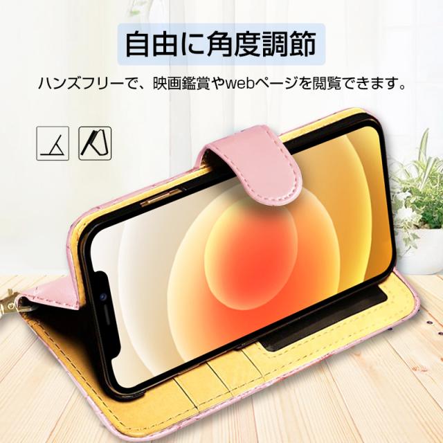 【スタンド機能&カード収納】横置きスタンド機能が付いて、ハンズフリーで、好きな角度に調節し、動画鑑賞や読書などを楽しめます。財布型ケースとして、内側には三つのカード入れとフリーポケットが付き、名刺、定期券、現金などを収納出来ます。