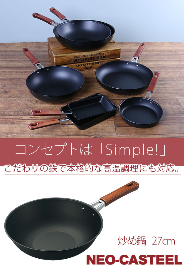 炒め鍋 27cm IH対応 鉄製 ネオキャスチール 日本製 ( ガス火対応 オール熱源対応 いため鍋 深型 鉄フライパン 27センチ フライパン 空焼き不要 フライパン ih対応)