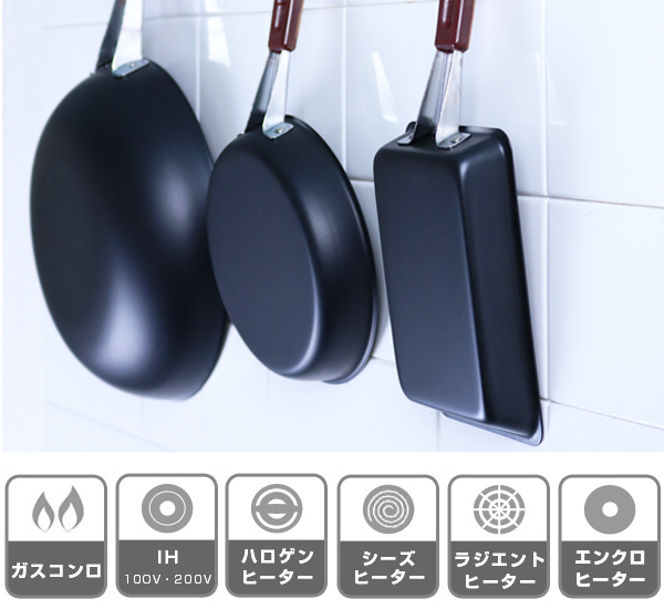 ガスはもちろん、IHクッキングヒーターなどさまざまな熱源に対応しています。使い始めの空焼きが不要で使う場所を選ばず、プレゼントとしても最適です。