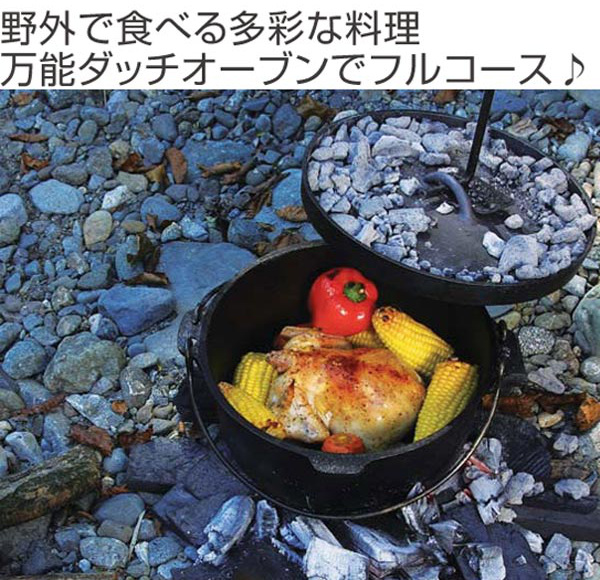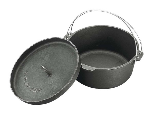 | 材質 | ダッチオーブン:鋳鉄(シリコン樹脂塗装) リッドリフター:鉄(メラミン焼付塗装) ダッチオーブン用収納バッグ:ポリエステル スリーウェイダッチオーブンスタンド:鉄(表面加工=シリコン樹脂塗装) アウトドアレザーグローブ:牛革 ダッチオーブンクックブック:紙 |