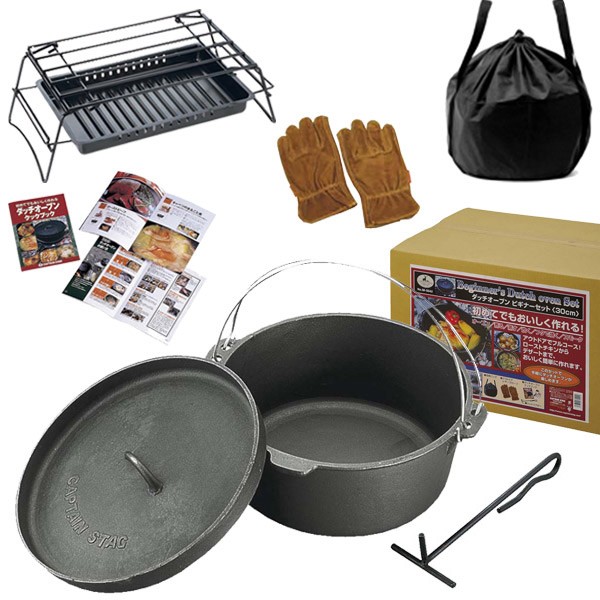 ダッチオーブン 鋳鉄製 ビギナーセット 30cm ( キャプテンスタッグ 調理器具 アウトドア CAPTAIN STAG 鍋 スモーカー BBQ キャンプ用品 レシピ付き )