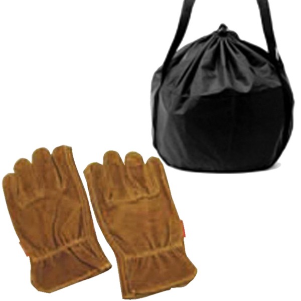 充実したセットレザーグローブとダッチオーブンの収納に便利なバッグ付きです。