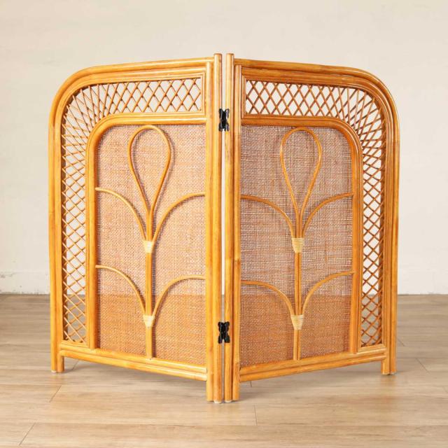 籐 スクリーン 二つ折り 高さ100cm 衝立 ラタン製 ( ついたて 屏風 間仕切り 家具 ラタン 籐製 アジアン リゾート風 )