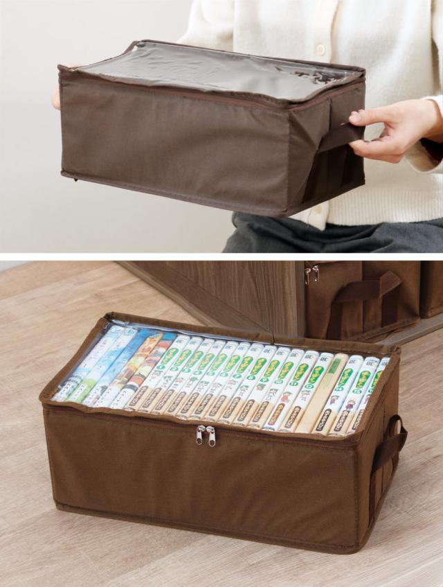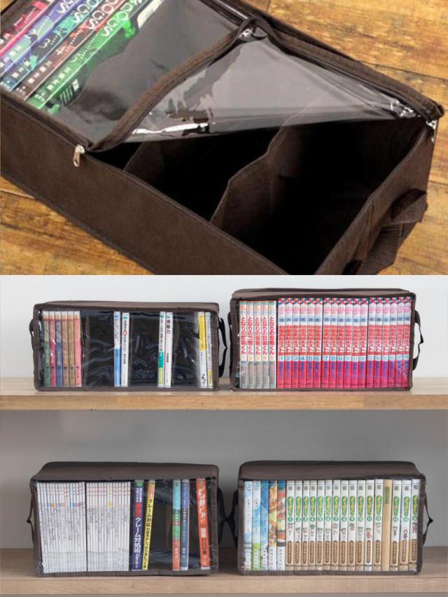 《 LH19892 持ち手付き メディア収納ケース ストッカー まんが マンガ コンパクト 折りたたみ 茶色 ブラウン 使いやすい 便利 おすすめ人気 ケース ボックス ダブルファスナー コレクション 整理 整頓 片付け 仕切り付き 約20冊 折り畳み 整理整頓 セット まとめて まとめ買い 》