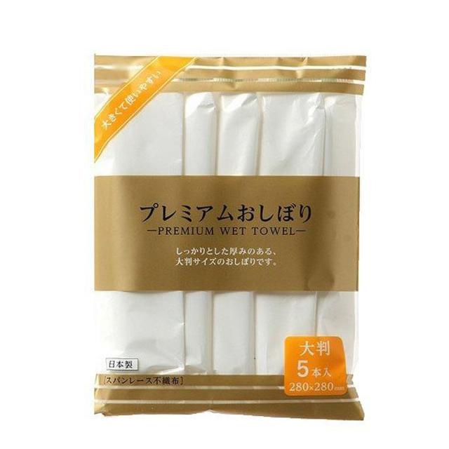 プレミアムおしぼり 大判 5枚入 日本製 ( 使い捨て お手拭 ふきん 5本 個包装 ロールタイプ 手拭 アウトドア ウェットシート ピクニック BBQ つかいすて 行楽 遠足 使い捨ておしぼり )