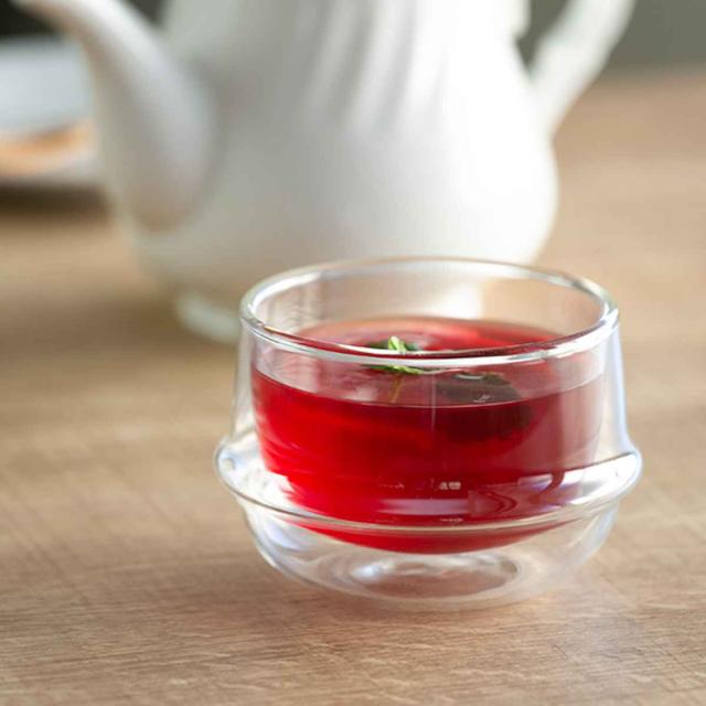 ころんと丸いフォルムが魅力のダブルウォールグラスです。耐熱ガラス製なので、温かい飲み物も、冷たい飲み物も入れることができます。コップを選ぶ時にグラスやマグカップなど飲み物によって分けがちですが、このグラスはどんなドリンクでも美しく見せてくれるのでコップを選ぶ時間や、洗い物も減らせます。食器のミニマル化にも貢献してくれそうです。