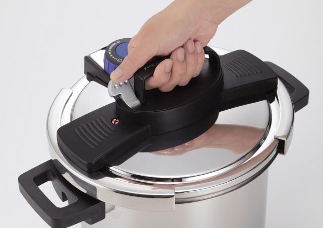 レバーの操作だけで簡単にフタの開閉ができるワンタッチレバー圧力鍋です。従来の圧力鍋と異なり、フタの開閉位置が固定されていないので、360度どの方向からでも開閉が可能です。圧力鍋初心者の方でも扱いやすく、安心してお使いいただけます。