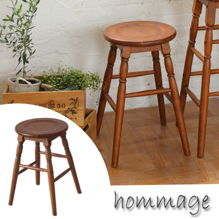 スツール 天然木 hommage オマージュ 座面高さ45cm ( 木製 チェアー 丸椅子 チェア カントリー アンティーク イス スツール 木製)