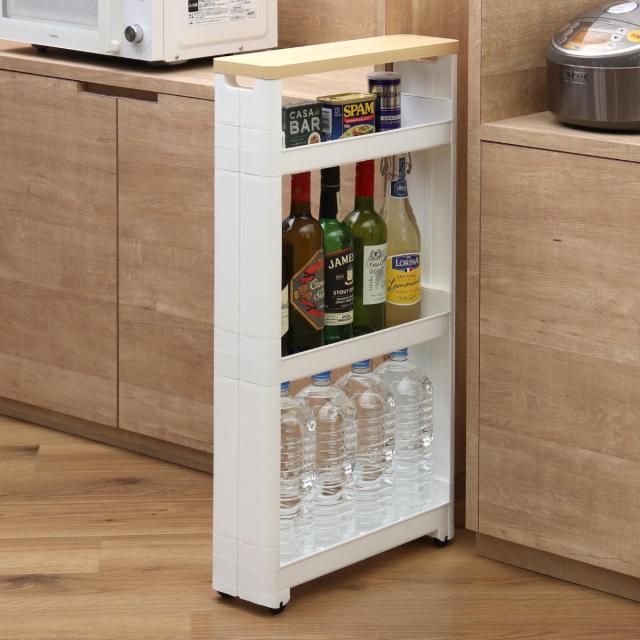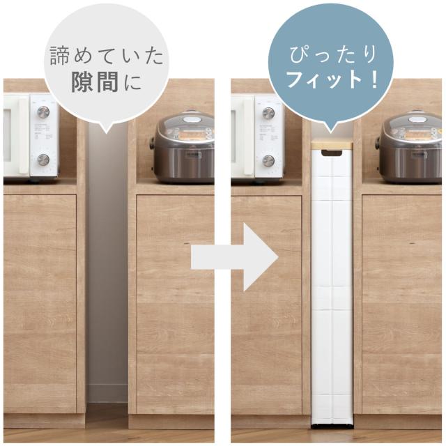 幅わずか12.5cmとスリムなオープンワゴンは、食器棚や冷蔵庫の横にあるちょっとした隙間を収納スペースとして活用できます。諦めていた隙間を利用して使い勝手の良いキッチンに生まれ変わります。