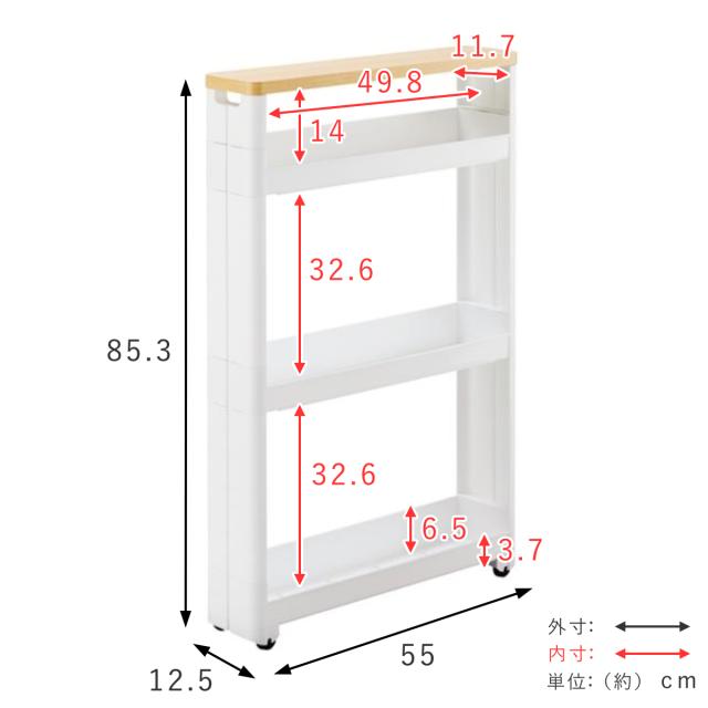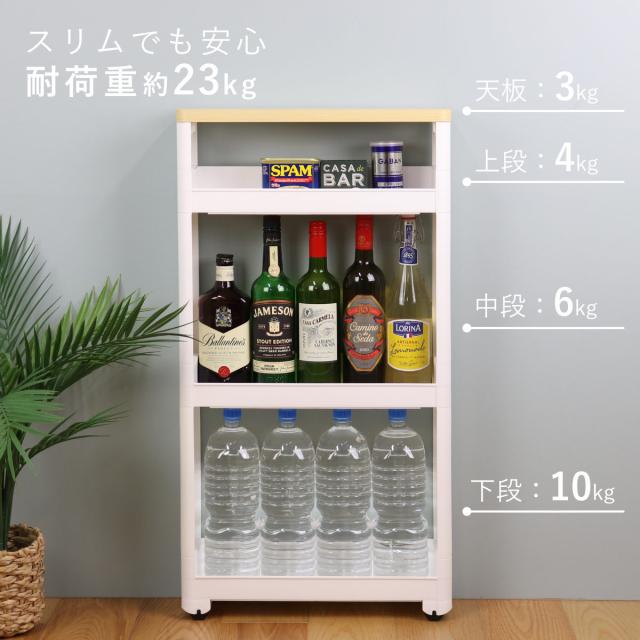 | 耐荷重 | 天板:約 3kg以下 上段:約 4kg以下 中段:約 6kg以下 下段:約 10kg以下 総合計:約 23kg以下 |