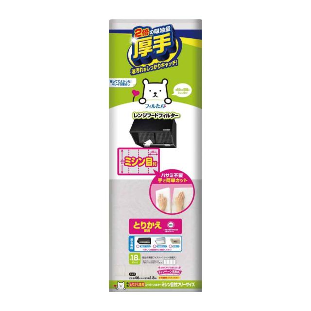 レンジフードフィルター Superフィルター フリーサイズ 46cm×1.8cm とりかえ専用 ミシン目付き ( 日本製 レンジフィルター 取り替え専用 レンジフードカバー レンジフード用 フィルター 換気扇 )