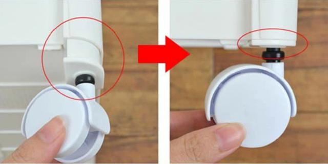 赤い丸印の部分が「キャスターホルダー」となっており、抜き差しも簡単。